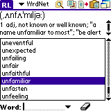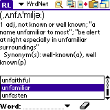 To provide an ability to install the large dictionary databases, RoadLingua supports all major expansion cards. To enable this feature you should simply put the dictionary PDB file to the /Palm/Launcher folder on the expansion card. RoadLingua will automatically detect the dictionary. There's no limitation to the number of dictionaries located on the card.